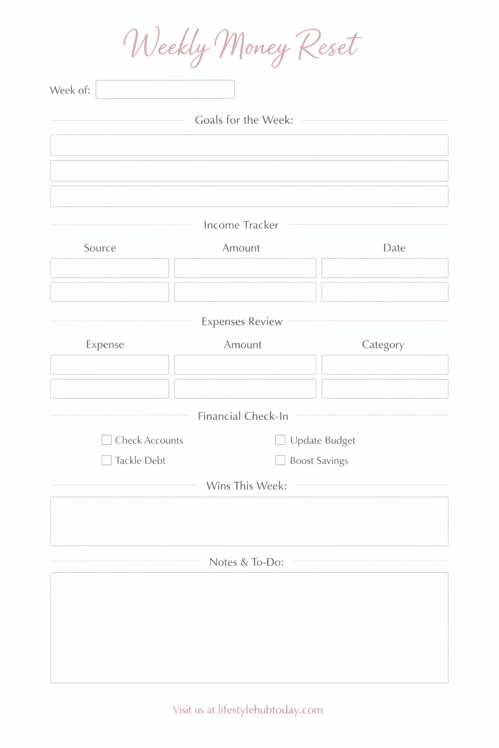 To simplify this routine, download the minimal Weekly Money Reset Checklist for step-by-step guidance.